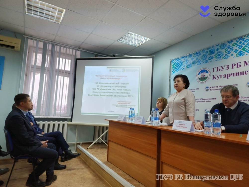 4 декабря-сотрудники Республиканского клинического фтизиопульмонологического центра и специалисты ГБУЗ РБ «Мраковская центральная районная больница» провели выездной семинар: « Об эпидемиологической ситуации по туберкулезу, в зонах курации Кумертауского филиала ГБУЗ РКФПЦ и РБ за 10 месяцев 2025г.»